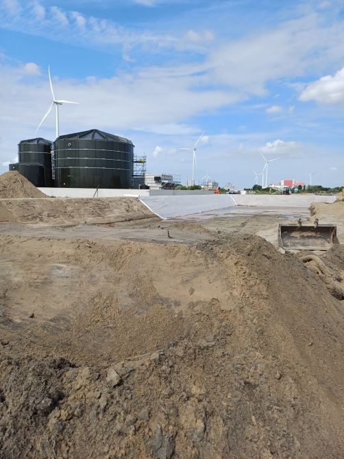 In opdracht van Circtec, de specialist in het produceren van duurzame brandstoffen en circulaire chemicalien uit afgedankte banden, hebben wij twee waterbassins aangelegd. Circtec bouwt in de haven van Delfzijl een enorm fabriekscomplex waar dus vele banden zullen worden omgezet in brandstoffen en chemicalien.
